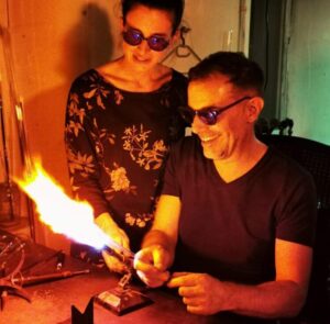 Schon als Kind lief ich nach der Schule durch die Werkstatt meiner Eltern und war von der faszinierenden Welt des Glasblasens umgeben. Dank meiner Eltern begleitet mich das Glasblasen seit meiner Geburt.
